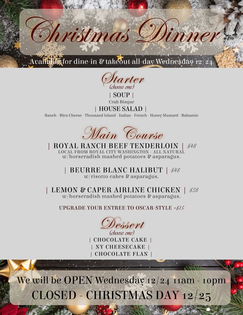 Join us for a warm, festive atmosphere, seasonal specials, and the perfect setting to gather with loved ones before the big day. From our family to yours, we wish you a joyful holiday season!